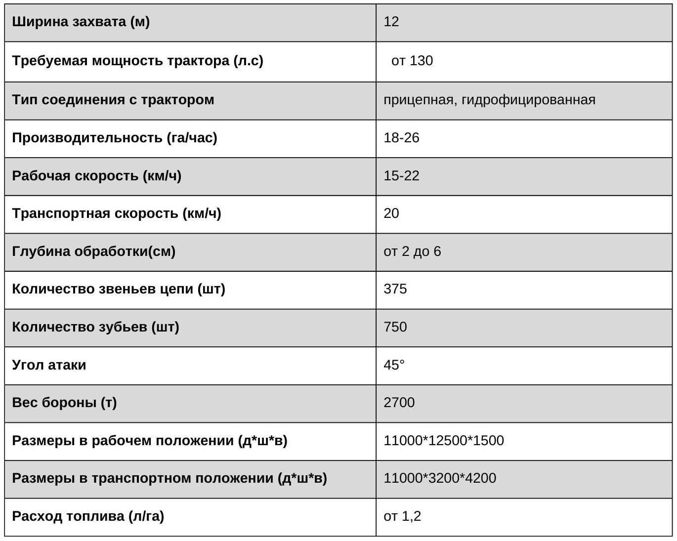 ► Глубина обработки 2-12 см, рабочая длина зуба 160 мм.
